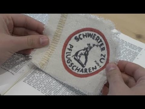 Die Christen druckten das Abbild der Statue und den Schriftzug „Schwert zu Pflugscharen“ auf Aufnäher. Besonders viele junge Menschen trugen den Aufnäher auf der Kleidung, um ihren Friedenswunsch öffentlich zu zeigen.